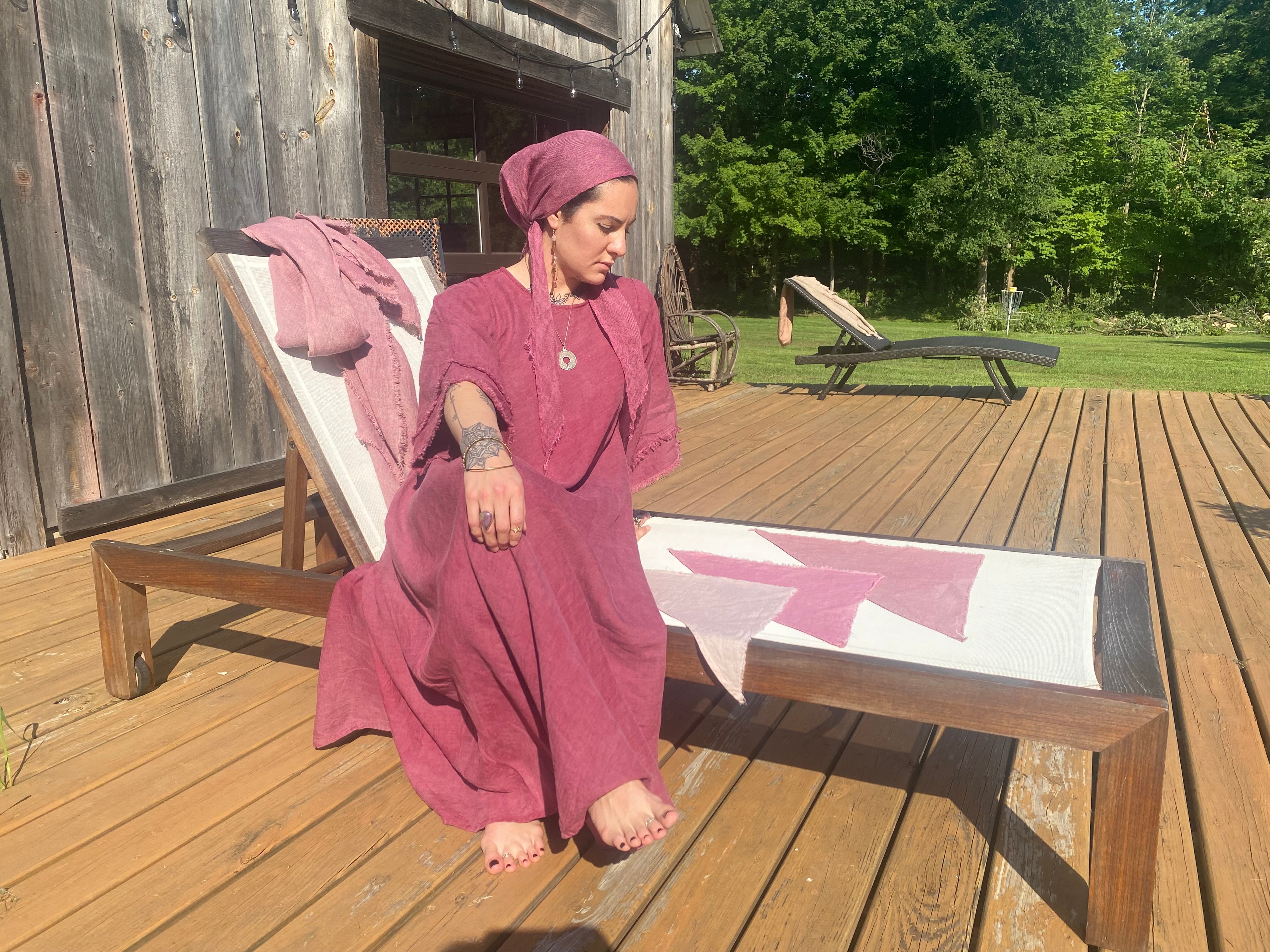 Shop will have natural dyes, plant dyed yardage, yarn, & vintage clothing, vintage natural fiber clothing, + handmade organic linen clothing for sale.