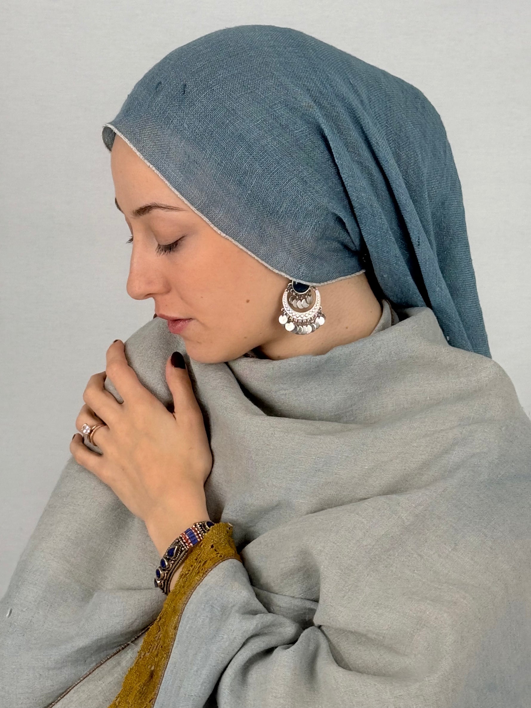 Designed with an organic cotton threaded trim, this veil combines elegance with artisanal craftsmanship. Lightweight and versatile, it drapes effortlessly, making it a perfect choice for both everyday wear and special occasions.