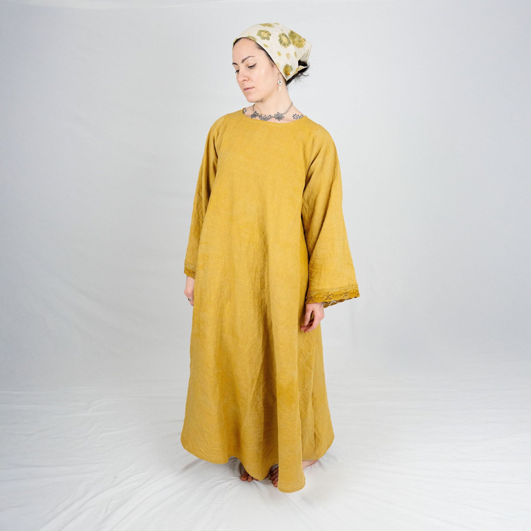 Hand-dyed with marigold for a vibrant, plant-based golden hue.
