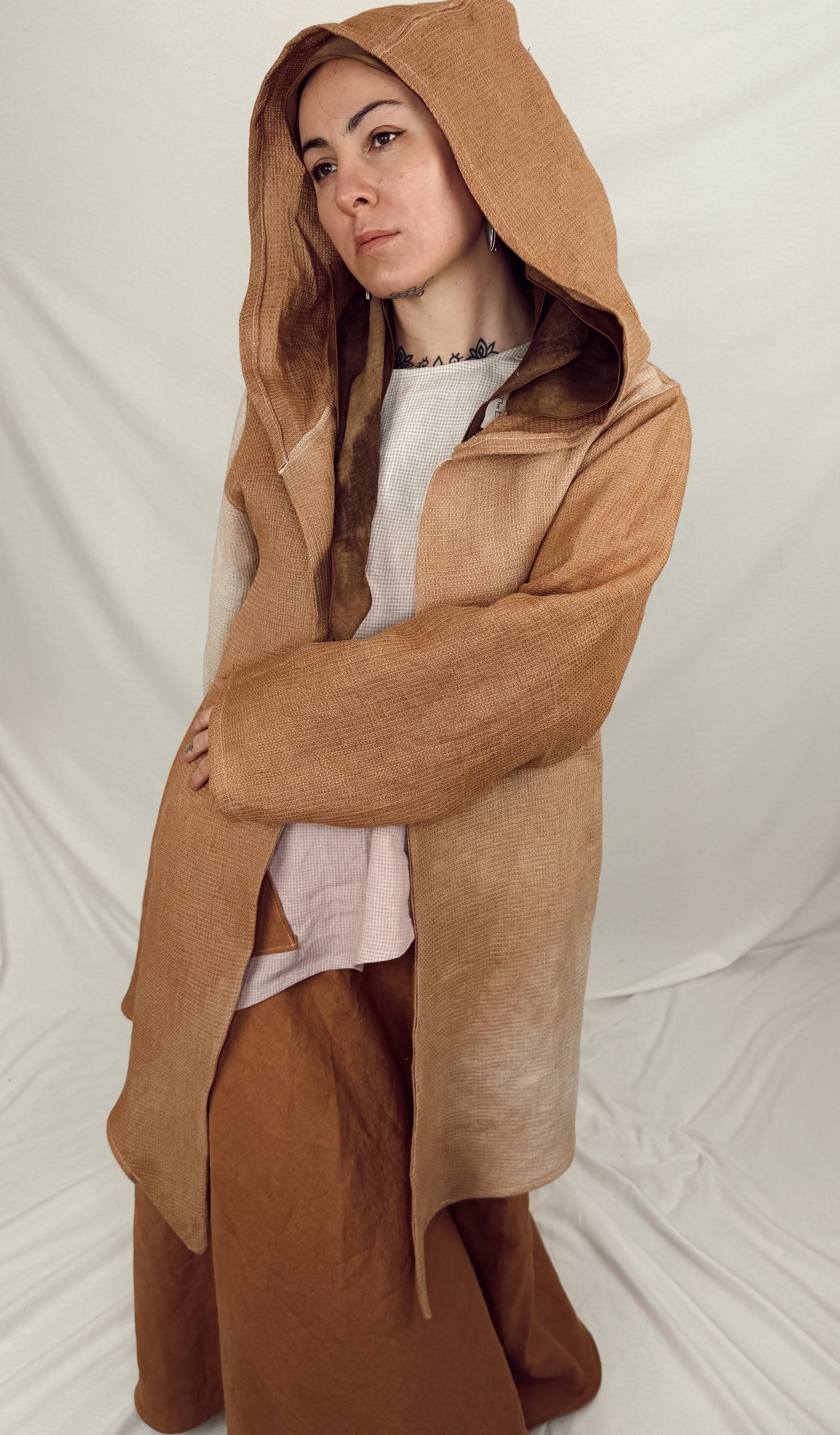 Crafted with sustainability in mind, all garments are made using 100% organic linen fabric & are all naturally dyed with plant dyes. Every piece is designed to minimize waste and ensure ethical, earth-friendly production practices.