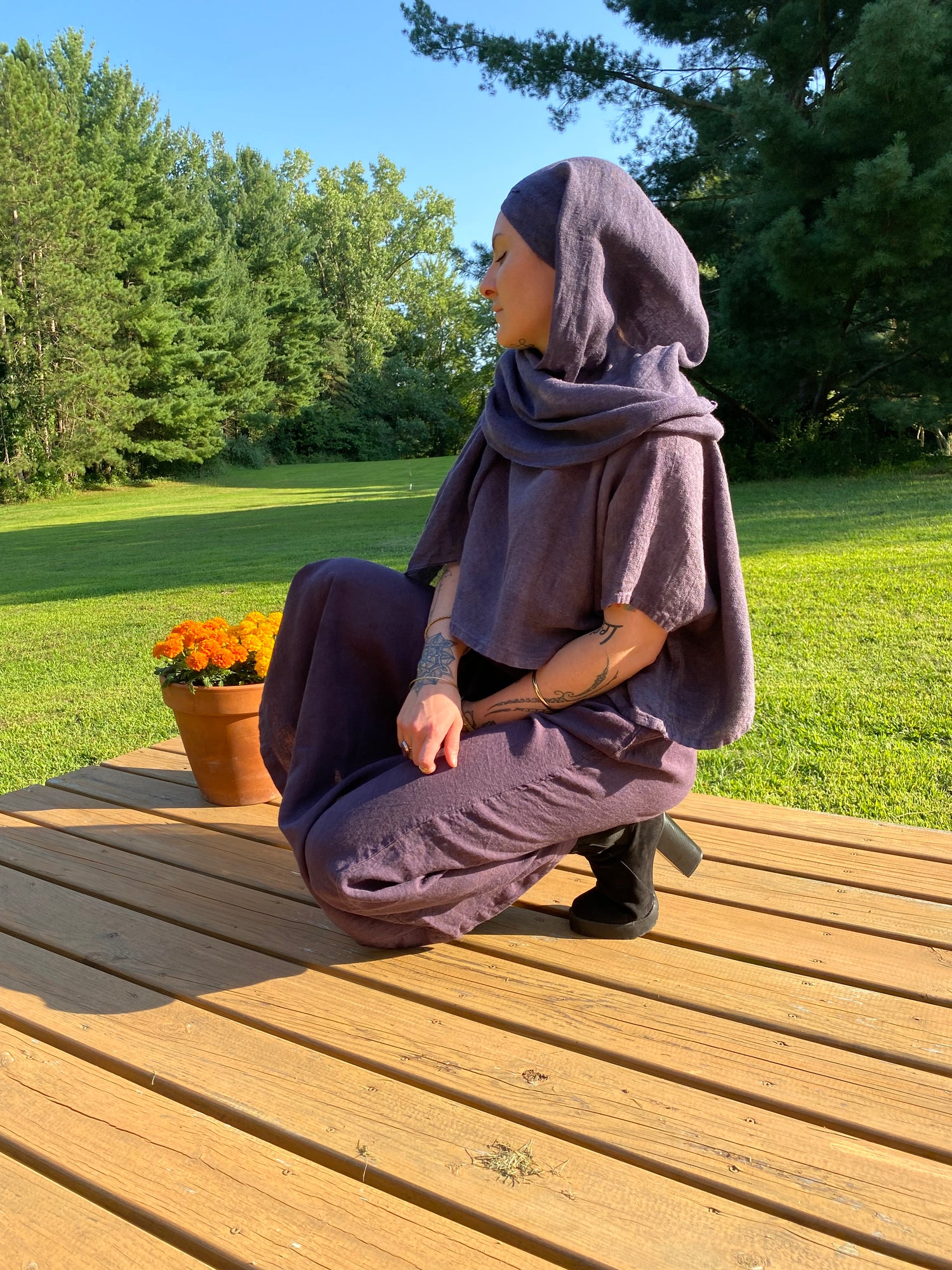 This ultimately led to the birth of Sown of the Earth, where I hand-dye and craft organic linen clothing as my specialty, & also take vintage & thrifted natural fiber clothing & dye them as well. (At the in person shop you will also find vintage sweaters of all natural fibers that are not naturally dyed).
